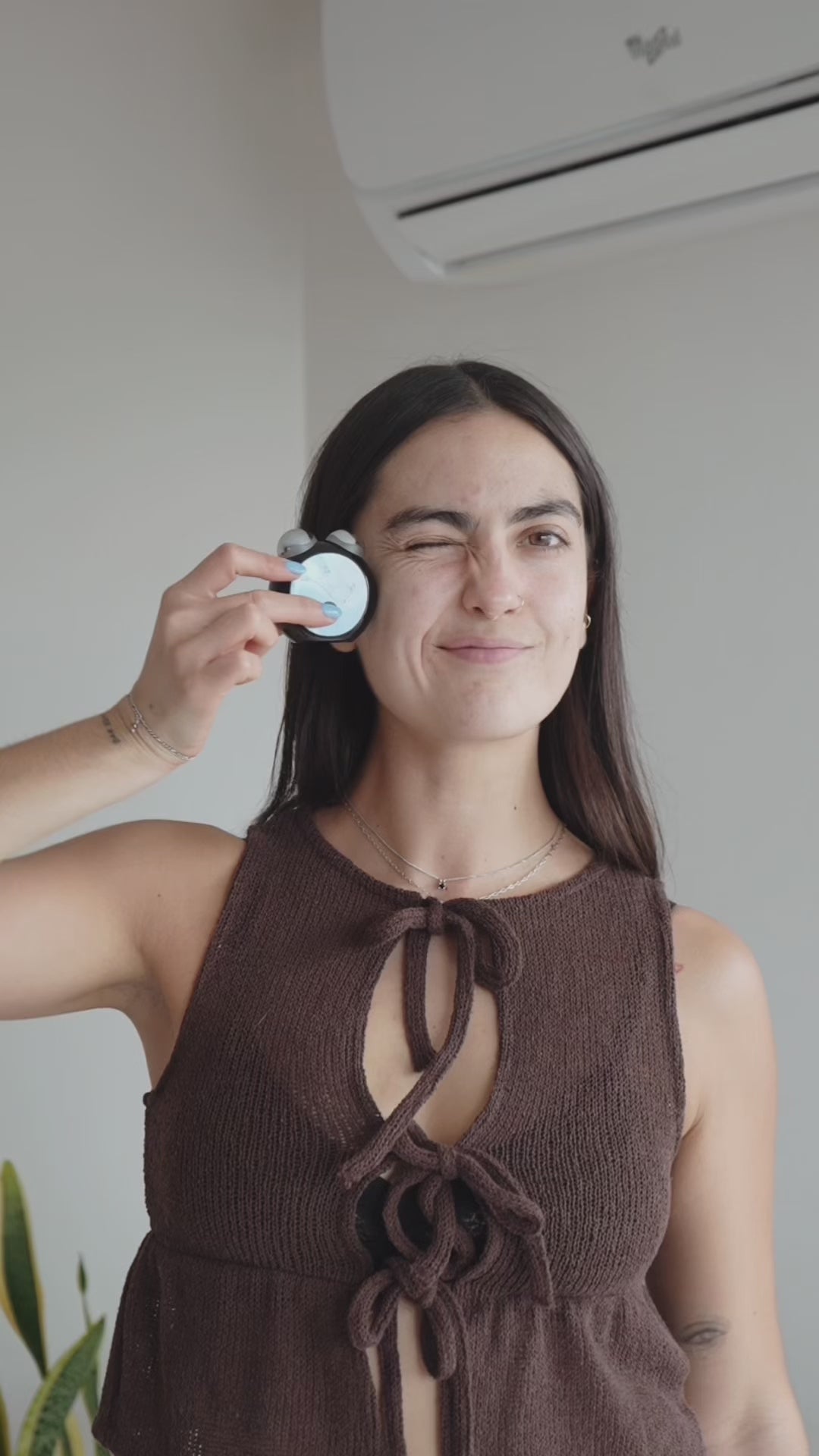 Pasa el dispositivo de microcorriente en movimientos ascendentes 2 min por lado. Disfruta la terapia LED complementaria.